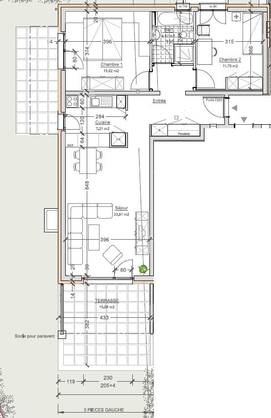 Appartement 3.5 pièces de 95 m2 - situé au rez-de-chaussée